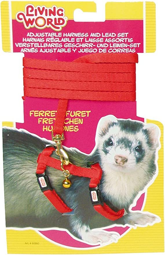 The Living World Adjustable Harness and Lead Set for Ferrets is made of safe, comfortable and durable nylon material. The color-coordinated set is custom designed to comfortably fit your ferret. The adjustment slides allow quick, customized fitting.