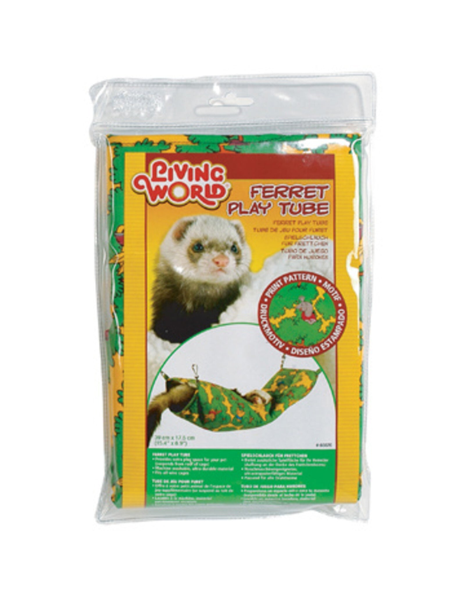 The extremely durable Living World Play Tube provides a safe and snugly place for your pet ferret to play in. The Play Tube comes with four clips to let you hang it from the roof of your cage, taking up no floor space! The multi-coloured material will add a splash of visual appeal to your pet's home