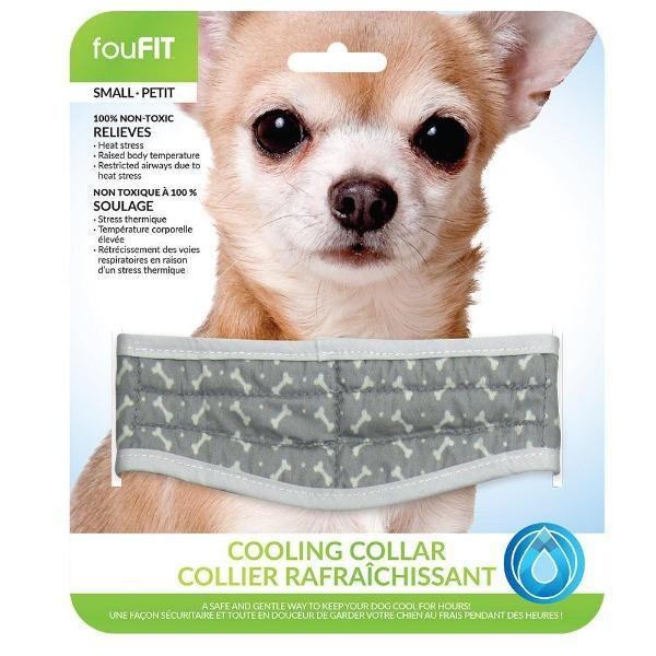 When you submerge the cooling collar in water, the special polymer beads inside the product activate. As the water slowly evaporates, it draws heat from your dog and cools them. Since dogs do not have sweat glands, the cooling collar mimics that process of cooling through evaporation. The cooling collar stays cool for up to 3 days!The cooling collars are made of cotton, and filled with polymer beads. They fasten with velcro.