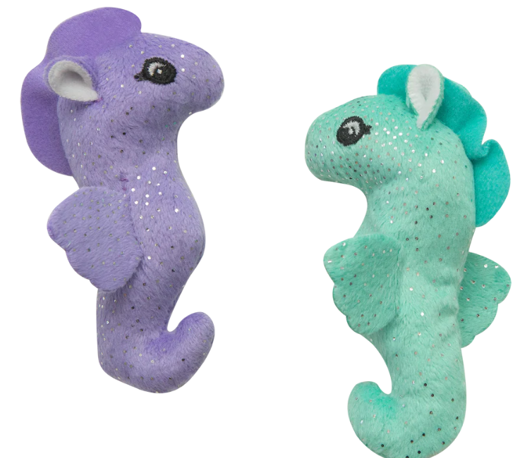 What's better then one seahorse for your cat? Two seahorses of course! Introducing SnugArooz Cat toys! This fun, crinkly 2pk of 4" cat toys (with catnip) will bring endless hours of fun to your kitty. Toys contain catnip and are made from recycled water bottles.