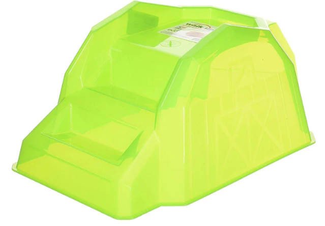 Give your little buddy a place to call his own with JW Pet's Walk Up Barn. This neon, translucent toy gives your small pet a space to explore-he can climb up the stairs to get a better view of his surroundings or he can go inside to rest and relax. It's made of odor-resistant and stain-resistant plastic and it's washable for hassle-free cleaning. This barn serves as a great stomping ground for a variety of small pets including guinea pigs, ferrets, dwarf rabbits, chinchillas, pet rats and more!