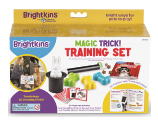 Put on a pooch magic show with the 10 dog trainer-approved activities! Includes treat wand, shell game bones, treat rabbit and top hat, training cards, and expert guide written by a certified professional dog trainer.